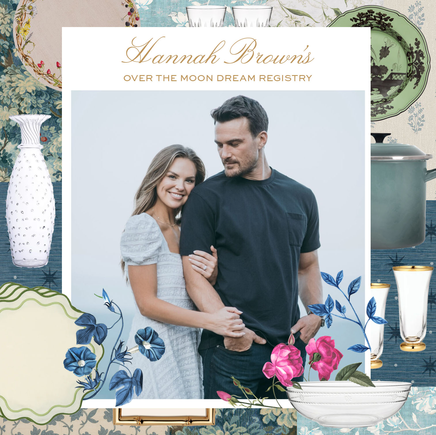 Two-time New York Times bestselling author and star of The Bachelorette Season 15 Hannah Kelsey Brown’s second romantic novel, The Four Engagement Rings of Sybil Rain, hits bookstore shelves on June 24th. While we pre-order our copies of what’s being described as a Forgetting Sarah Marshall meets Anyone But You tale, Hannah and her lead character, Sybil, have a particular trait in common—they’re both engaged! And ahead of her and Vice President of Business Development and Health Coach at Blokes Men’s Health and Joi Women’s Health Adam Woolard’s July wedding in Nice, France, Hannah is sharing her Over The Moon Dream Registry.