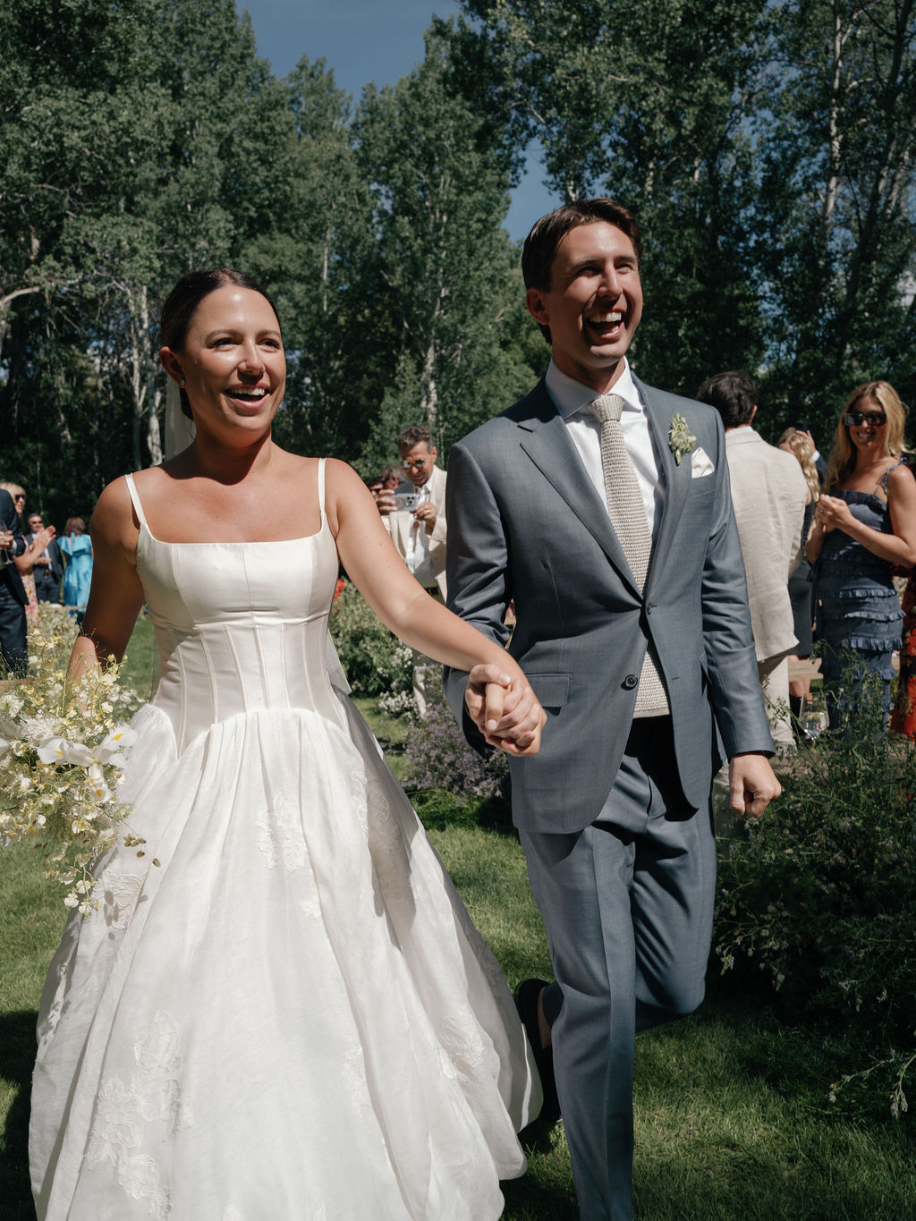 Annie’s older brother, Henry, officiated. Annie remembers, “There was a moment when he was talking about marriage and my veil blew in the wind, catching the light through the aspen trees, people told me it looked magical.” Once married, the newlyweds recessed to “Thankful for You” by Andre Gibson and The Universal Togetherness Band.