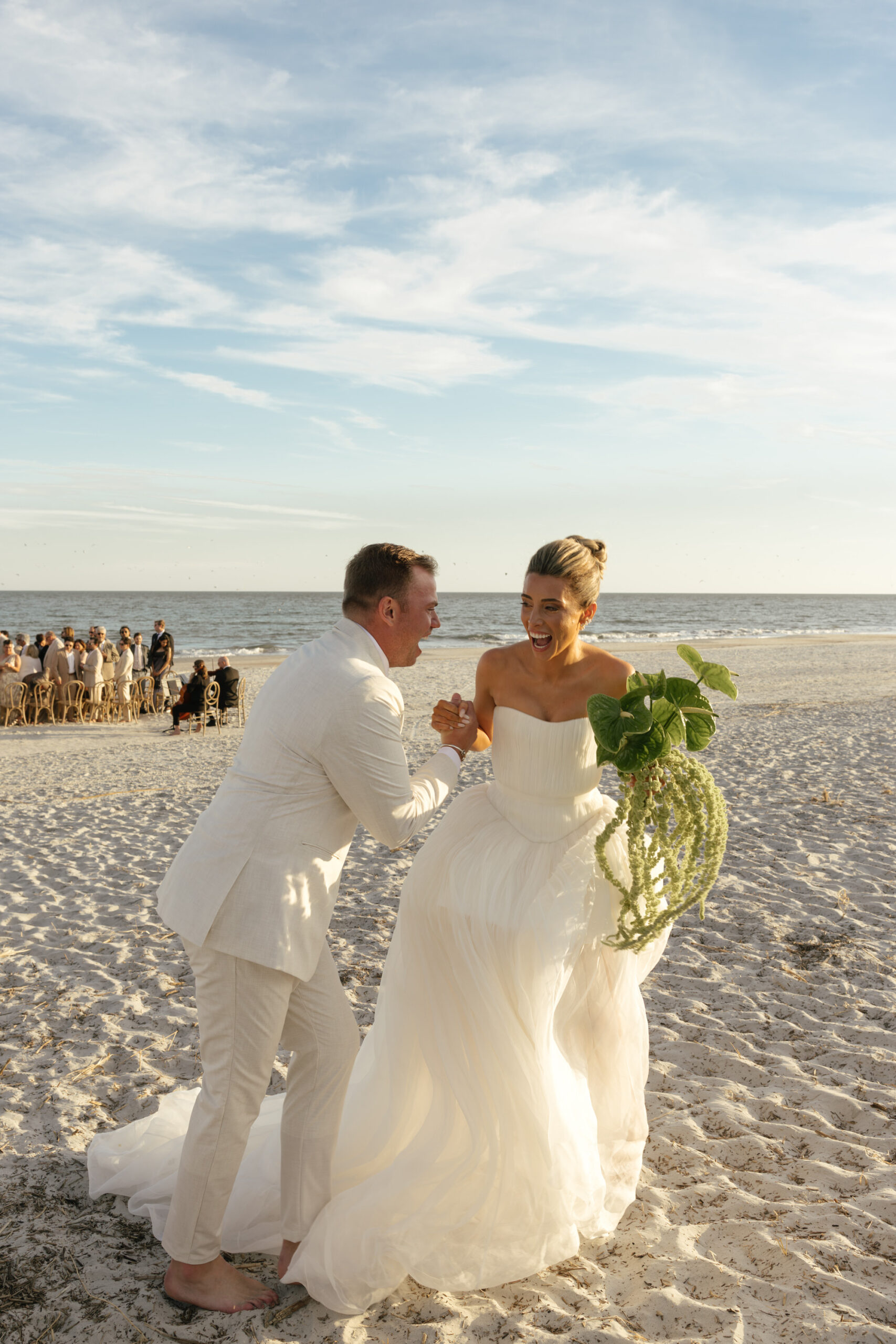 The ceremony was the part of November 15, 2025, Lauren anticipated most. “I was seriously giddy the whole day,” she recalls. “You can see it in the photos—I did not play it cool.” The couple exchanged vows they had written themselves, read aloud on the beach. “There wasn’t a dry eye,” she says. Standing with Matthew and looking out at Olive, their families, and friends, Lauren describes the moment simply: “It felt so real and vulnerable.”