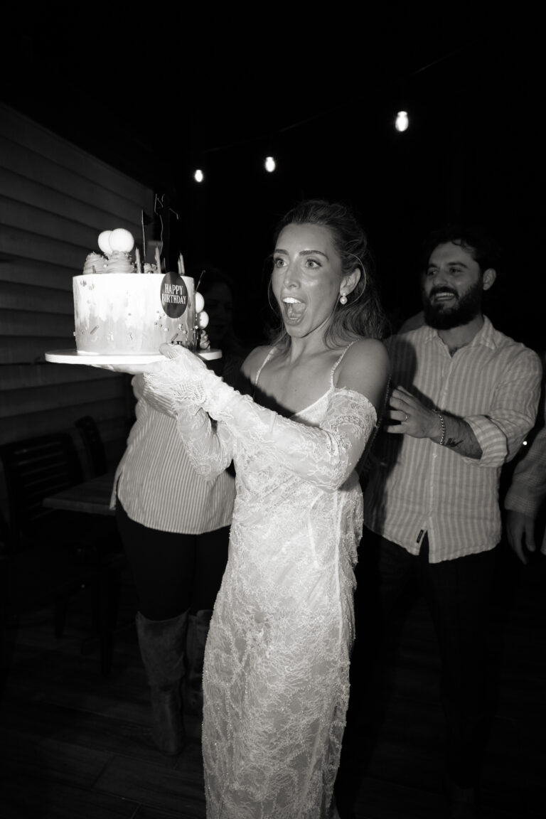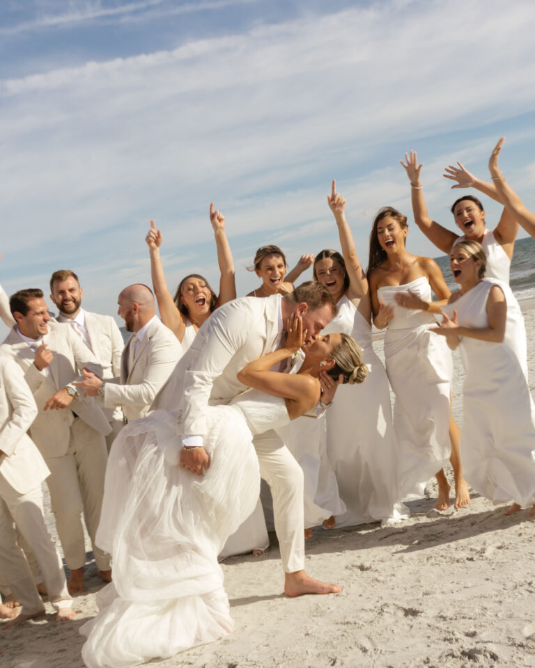 Lauren partnered with Mandalynn & Co. to create a setting that felt elevated yet understated. “My style is very elevated, simple, and calm in my everyday life,” she explains. The beach guided the aesthetic, supported by draping, candlelight, and natural elements from Flora by Hannah. She incorporated pieces from her own brand, Lauren Elizabeth Shop, including marble décor and custom table-card holders for guests to take home. Photography was captured by Gabby Galloway and Madison Lane, with elevated behind-the-scenes moments captured by Dreamy Content.