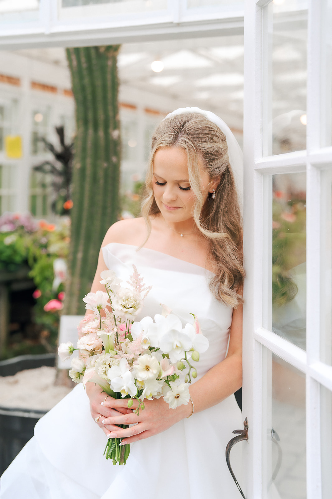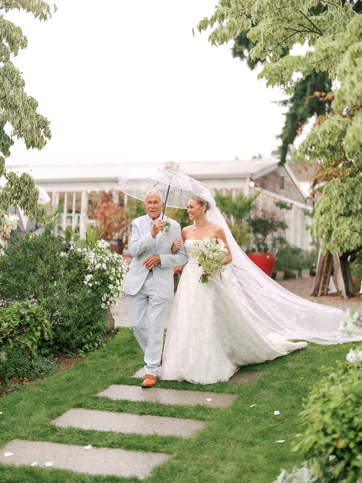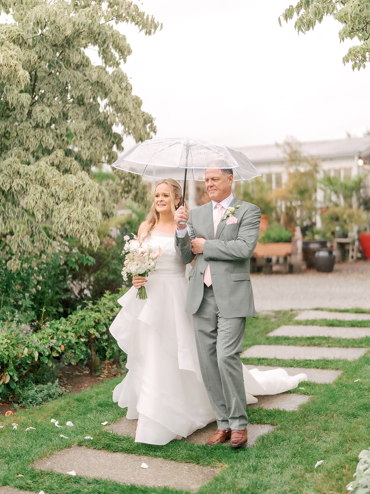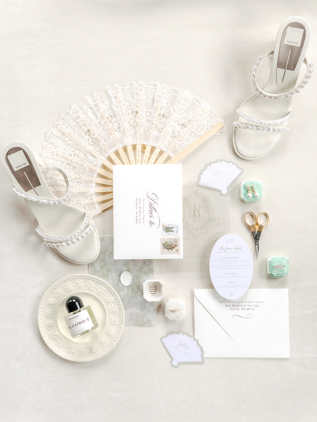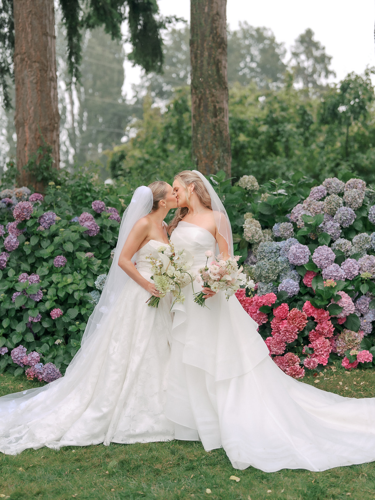 As the brides-to-be both come from a long line of green thumbs, they agreed they wanted their wedding to feel like a secret fairytale garden. “Our families also both have long lines of teachers, and having our ceremony at the historic schoolhouse felt like a lovely nod to them,” Sophie explains. “Christianson Nursery offered lush rose gardens and multiple beautiful spaces that we could host the various stages of our wedding day. I wanted to embrace my British heritage and lean into the Pride and Prejudice moody romance of the English rose gardens.”