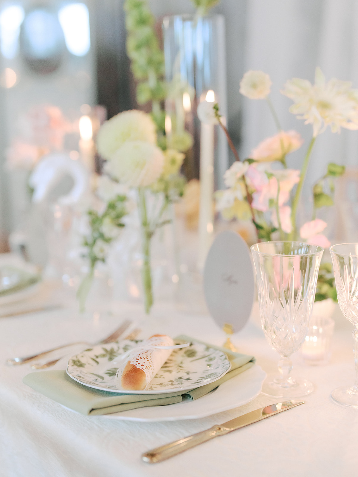 Once officially wed, the celebration moved to the reception hall with endless candles lighting the space. Delicious pizza was served for dinner—a nod to the couple’s travels in Italy.